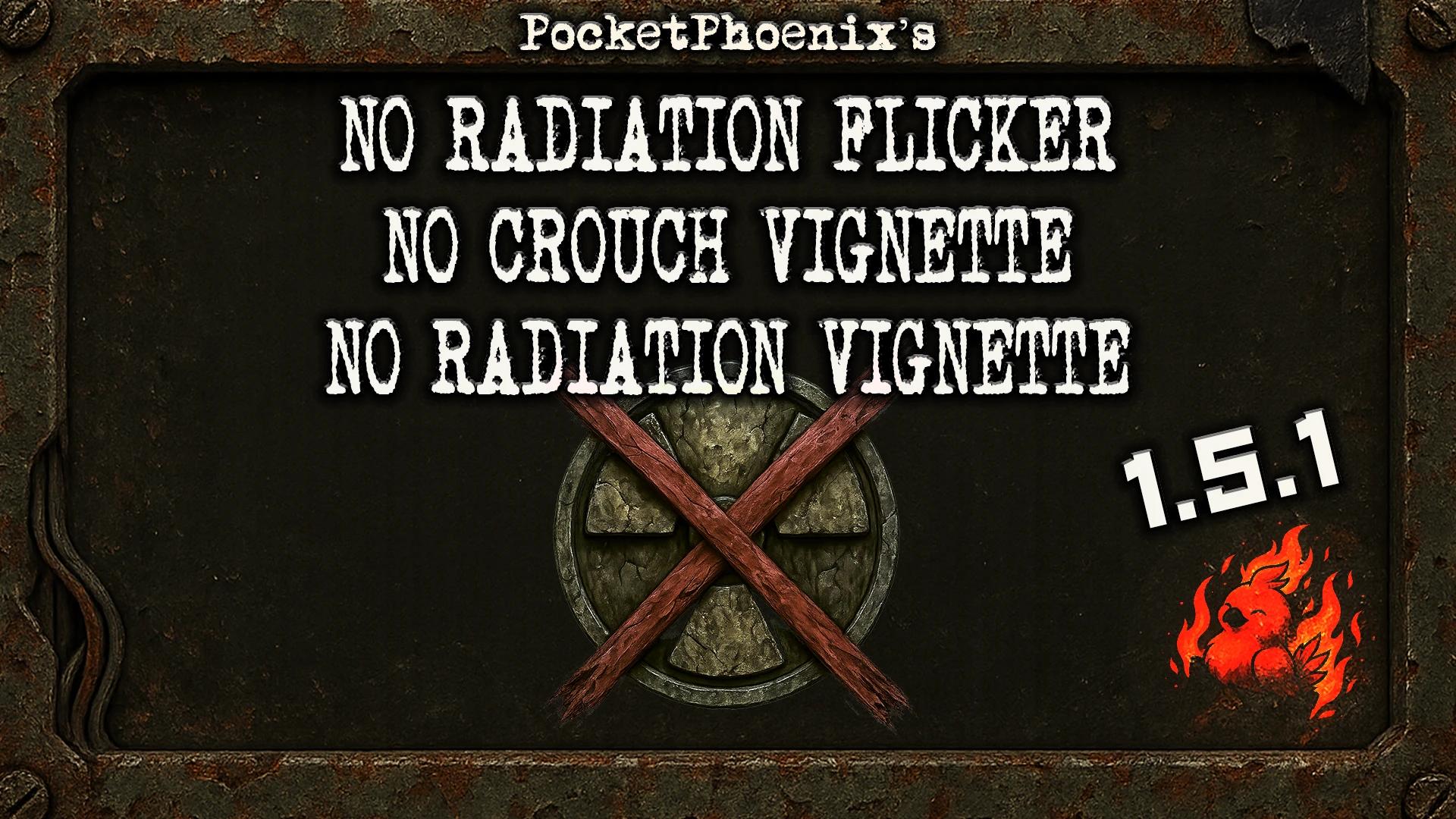 Этот мод убирает постобработку для радиации и приседания (мерцание экрана от радиации и виньетку, а также эффект виньетки при приседании).