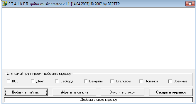 С помощью этой программы вы сможете добавить любую музыку в игру сталкер (ЗП, ТЧ,ЧН).