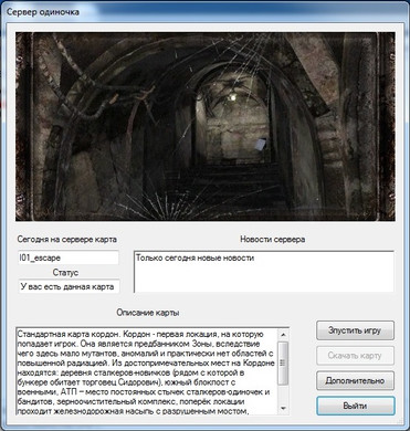 Вы находитесь на странице с файлом Загрузчик карт для сетевой игры Сталкер Тень Чернобыля который относится к категории Программы для сталкера если вы не можете скачать файл по каким то причинам то сразу напишите об этом в комментариях, либо воспользуйтесь опцией "Жалоба" и мы поможем вам решить проблему. Большинство файлов загружены на наш файлообменник, а так же на сервер сайта, то есть вы можете качать нужные вам файлы на максимальной скорости которая вам доступна, думаю что проблем с этим не должно возникать.