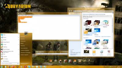 Включает: • тему Survarium (основные цветовые настройки) • 1 обоя — первый концепт арт (HD — 1920 x 1080); • три комплекта указателей для вашей мыши; • набор стилизованных иконок для замены стандартных; • интегрирована звуковая схема (большая часть звуков из STALKER: ТЧ); • одна иконка для вашей учётной записи в (в меню Пуск).