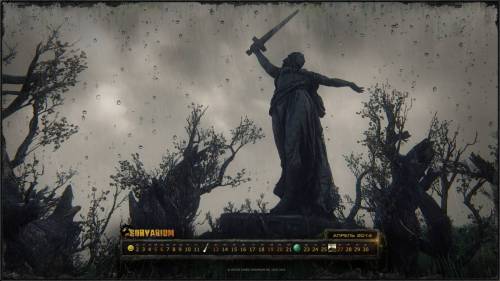 Среди останков разгромленного и заросшего Мамаева Кургана осталась возвышаться статуя Родины-матери, непоколебимая и непреклонная. Неподвластная времени, она продолжает взирать на изменившийся до неузнаваемости мир. Монумент, ставший символом воли к победе, стал центральной темой календаря на апрель 2014 года.
